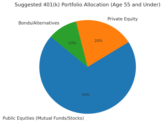 Younger workers (or those still 10–15 years from retirement) can tolerate the illiquidity of private equity. Unlike mutual funds, PE investments often have multi-year lockups. But this aligns well with a 401(k), since these funds are meant for long-term retirement savings—not short-term trading.
